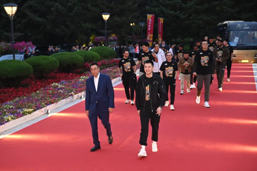 辽宁友谊宾馆气氛喜庆热烈,“祝贺辽宁男篮勇夺2023—2024赛季CBA总冠军”的标语鲜艳醒目。刚刚从总决赛赛场载誉归来的辽宁男篮教练员、运动员及工作人员,身着冠军服、精神抖擞,踏上红毯步入友谊宫。郝鹏、李乐成、周波等省领导同大家一一握手,致以亲切问候。