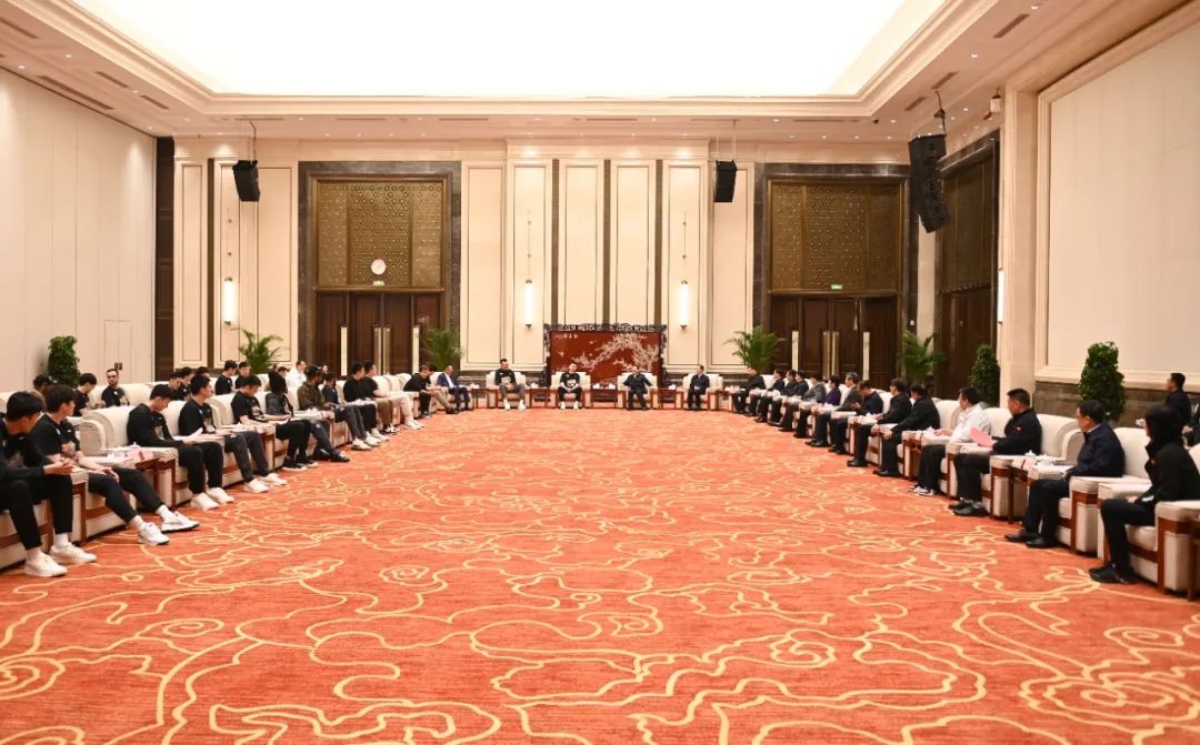 5月23日,省委书记、省人大常委会主任郝鹏,省委副书记、省长李乐成,省政协主席周波会见获得2023-2024赛季CBA总冠军的辽宁男子篮球队。