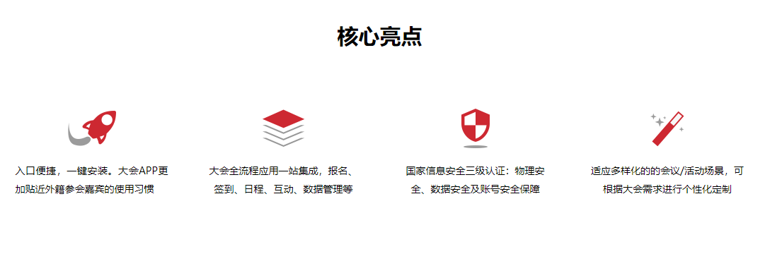 参会嘉宾可以通过大会APP实时了解大会信息、接机接站信息、酒店入住信息等多项动态内容,为嘉宾提供更加贴心服务